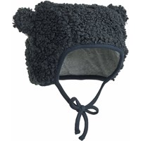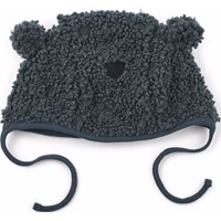 Donkerblauwe muts met teddybeer oren voor de kleintjes. De muts is gemaakt van zachte teddyfleece en is perfect om het hoofd en de oren warm te houden op koude dagen. De muts kan strak worden vastgebonden rond het gezicht met een koordje onder de kin.