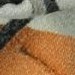 Slab met een kleurrijke voetbalprint. Het slabbetje heeft een drukknoop in de nek.