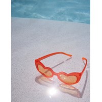 Oranje hartvormige zonnebril met oranje glazen. De zonnebril van Molo heeft 100% UV-bescherming. Maten 7-16 jaar.