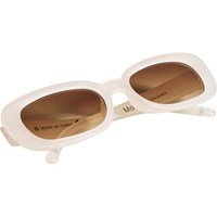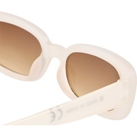 Ovale zonnebril in crème met getinte glazen en glanzende afwerking. De UV-beschermingscategorie 2 blokkeert 57-82% van de schadelijke zonnestralen. Perfect voor dagen met lichte bewolking of milde zon. Geschikt voor de leeftijdsgroep 7 tot 16 jaar.