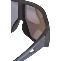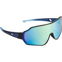 Sportieve zonnebril in zwarte en blauwe tinten met gekleurde spiegelglazen en satijnen afwerking. De UV-categorie 3 blokkeert 82-92% van de schadelijke UV-stralen van de zon. Geschikt voor zonnige dagen met behoefte aan effectieve zonbescherming. Geschikt voor de leeftijdsgroep 7 tot 16 jaar.