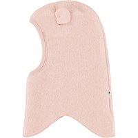 Beige Merino wollen bivakmuts met vastgenaaide oren. De bivakmuts houdt de nek en schouders lekker warm.