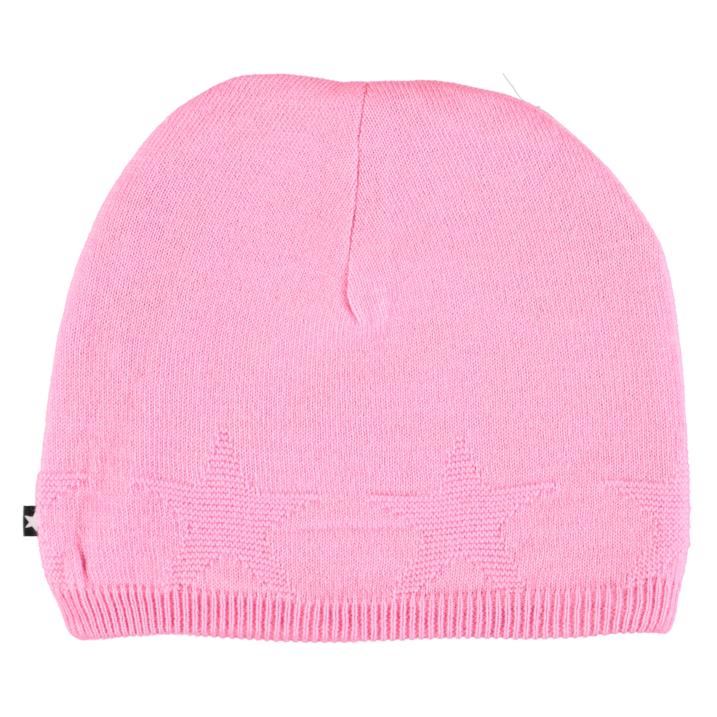 Roze wollen muts met ingebreide sterren en geribde boord aan de onderkant