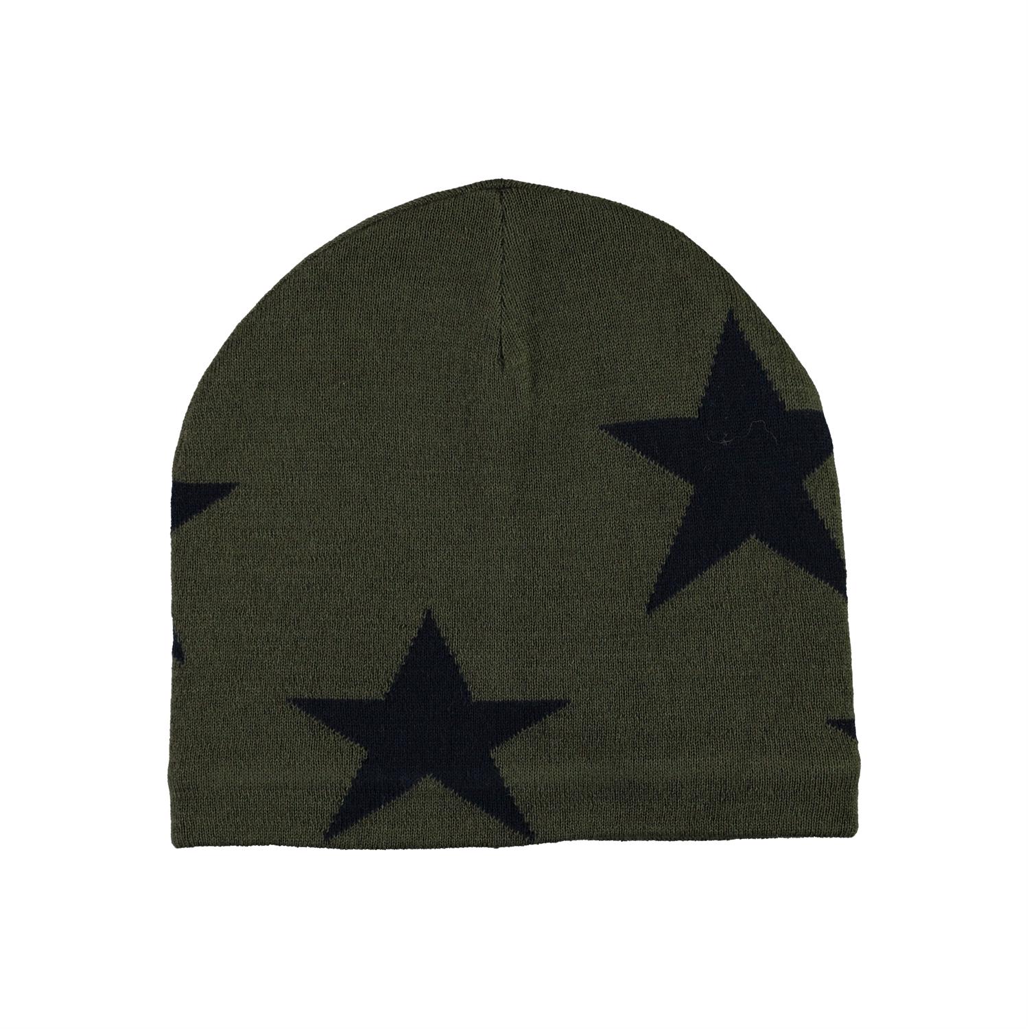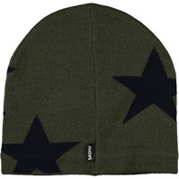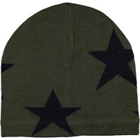 Groene muts van een zachte wolmix met intarsia sterren.
