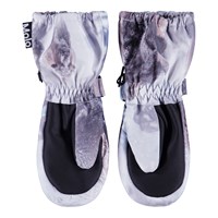 Waterdichte en ademende wanten met bizonprint, fleecevoering en 3M™ Thinsulate™-isolatie. De wanten hebben een reflector aan de voorkant en elastiek en verstelbaar klittenband rond de pols. Let op dat de bovenkant van dit model iets langer is dan die van Mitzy, zodat er geen opening is tussen de jas en wanten.