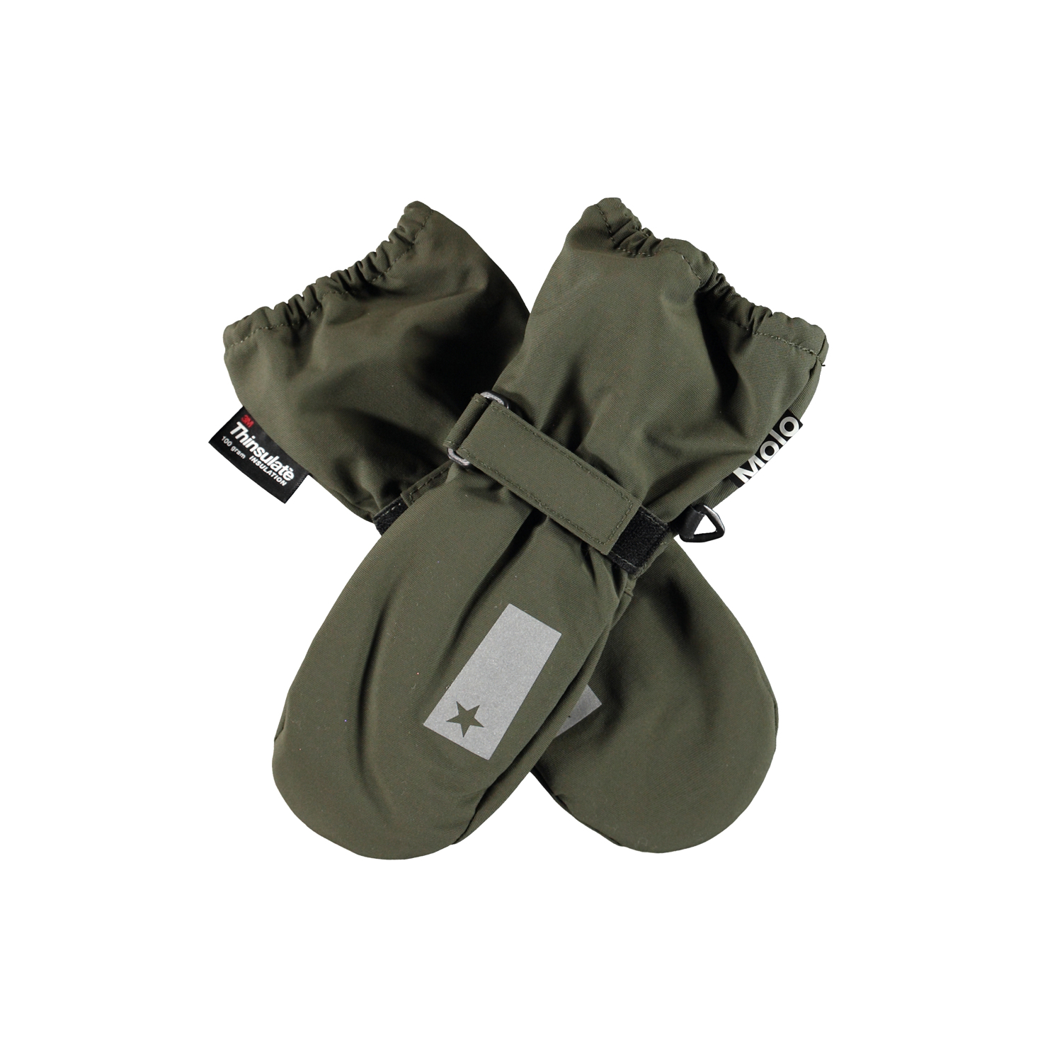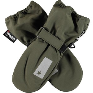 Groene waterdichte en ademende wanten met 3M™ Thinsulate™ voering. De wanten hebben sterreflectoren aan de bovenkant van de hand, elastisch en verstelbaar klittenband bij de polsen. De buitenstof is gemaakt van 59% gerecycled nylon, de 3M™ Thinsulate™ voering is gemaakt van 78% gerecycled polyester en de binnenstof is gemaakt van 100% gerecycled polyester. Houd er rekening mee dat de manchet van dit model iets langer is dan die van Mitzy, zodat er geen opening is tussen de wanten en de jasmouw. Dit product heeft een waterbestendige, PFC-vrije oppervlaktebehandeling (Bevat bijvoorbeeld geen PFOS, PFOA, etc). Waterkolomdruk: 10.000 mm. Ademend: 8.000 g/m2/24u. Maat 1-2 jaar heeft een rits in de manchet in plaats van de klittenbandsluiting.