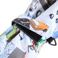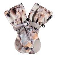 Waterdichte en ademende wanten met kleurrijke pixelprint, fleece voering en 3M™ Thinsulate™ isolatie. De wanten hebben een reflector aan de voorkant en elastiek en verstelbaar klittenband rond de pols. Let op dat de bovenkant van dit model iets langer is dan die van Mitzy, zodat er geen opening is tussen de jas en wanten.