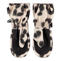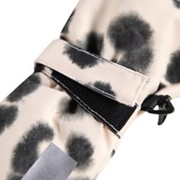 Sneeuwluipaard-gevlekte, waterdichte en ademende wanten met fleece voering en 3M™ Thinsulate™ isolatie. De wanten hebben een reflector aan de voorkant en elastiek en verstelbaar klittenband rond de pols. Let op dat de bovenkant van dit model iets langer is dan die van Mitzy, zodat er geen opening is tussen de jas en wanten.