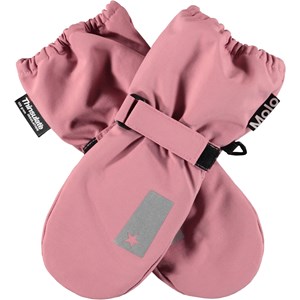 Lichtroze waterdichte en ademende wanten met 3M™ Thinsulate™ voering. De wanten hebben sterreflectoren aan de bovenkant van de hand, elastisch en verstelbaar klittenband bij de polsen. De buitenstof is gemaakt van 59% gerecycled nylon, de 3M™ Thinsulate™ voering is gemaakt van 78% gerecycled polyester en de binnenstof is gemaakt van 100% gerecycled polyester. Houd er rekening mee dat de manchet van dit model iets langer is dan die van Mitzy, zodat er geen opening is tussen de wanten en de jasmouw. Dit product heeft een waterbestendige, PFC-vrije oppervlaktebehandeling (Bevat bijvoorbeeld geen PFOS, PFOA, etc). Waterkolomdruk: 10.000 mm. Ademend: 8.000 g/m2/24u. Maten 1-2 jaar hebben ook een ritssluiting aan de manchet.