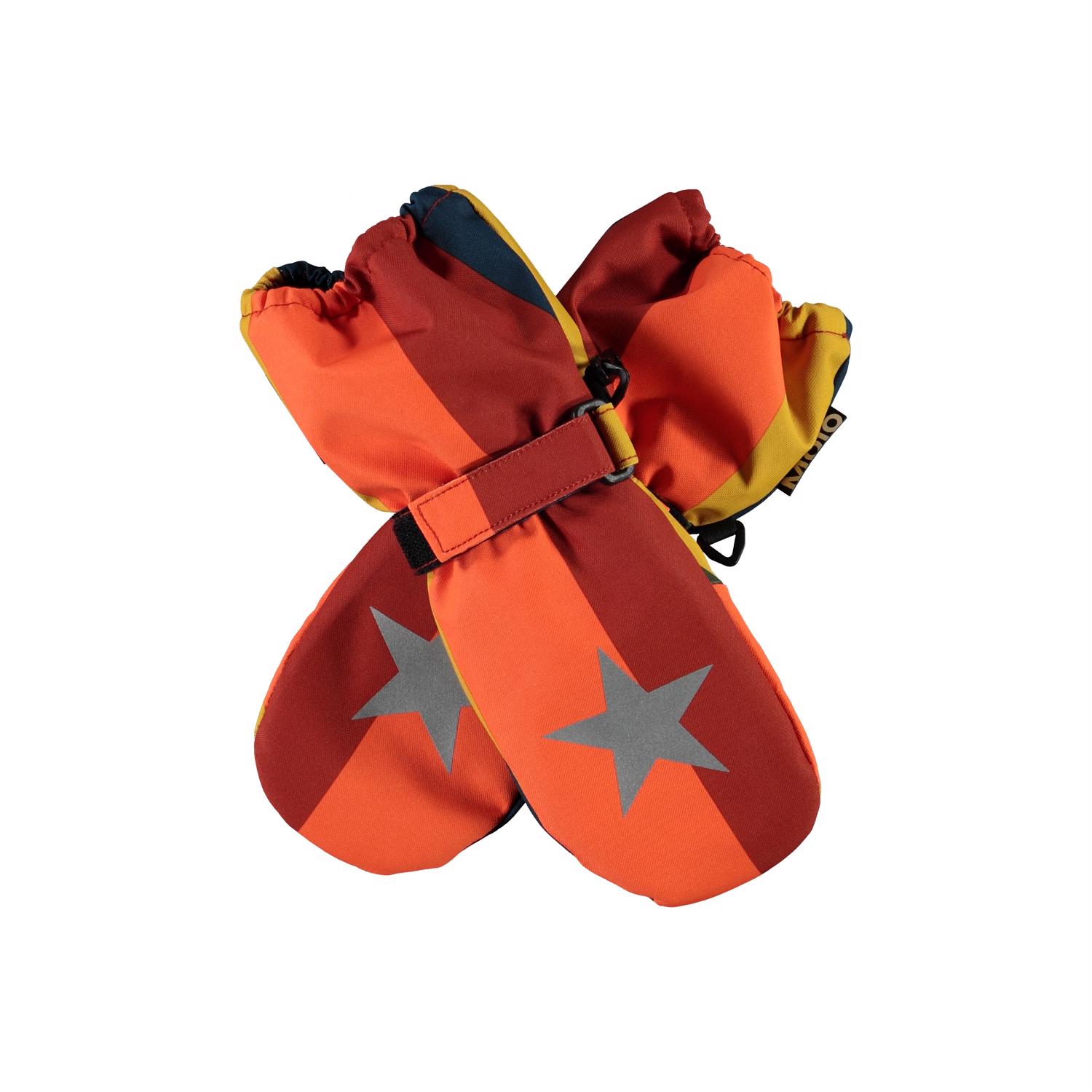 Waterdichte en ademende wanten met 3M ™ Thinsulate ™ isolatie in regenboog kleuren. Ze hebben sterreflectoren op de bovenkant van de handen en elastisch en verstelbaar klittenband bij de polsen. De buitenstof is 51% gerecycled en gemaakt van gerecycled polyester. Let op dat de schacht bij dit model iets langer is dan bij de Mitzy, zodat er geen opening is tussen de want en de mouw van de jas. De wanten hebben een waterafstotende, PFC-vrije oppervlaktebehandeling (bevat bijvoorbeeld geen PFOS, PFOA, etc). Waterkolomdruk: 10.000 mm en ademend: 8.000 g / m2 / 24 uur. Maten 1-2 jaar hebben ook een ritssluiting aan de schacht.