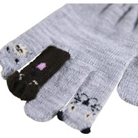 Zwarte gebreide handschoenen met aliens op de vingers. De handschoenen hebben een geribbelde boord rond de pols waardoor het comfortabel is om te dragen en het voorkomt dat de handschoenen van de hand afglijden.