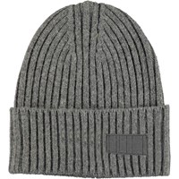 Roze gebreide kabelmuts van een wolmix met een omslagen boord en Molo''s logo op de voorkant.