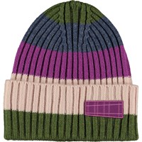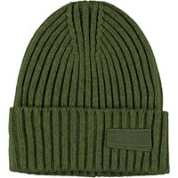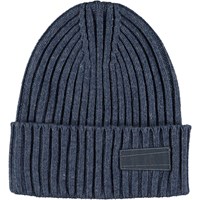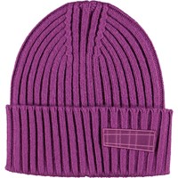 Donkergrijze gebreide kabelmuts van een wolmix met een omslagen boord en Molo''s logo op de voorkant.