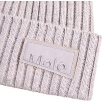 Lichtpaarse gebreide muts in rib met omslag en het logo van Molo aan de voorkant.