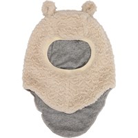 Donkergroene bivakmuts met schattige teddyberen oren voor baby's en peuters. Het is gemaakt van zachte teddyfleece en is perfect om de nek, het hoofd en de oren warm te houden op koude dagen. De bivakmuts is gevoerd met zachte grijze melange jersey voering.