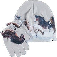 Bijpassende set van muts en handschoenen met een print van een luipaard. S/M: 3-6 jaar. M/L: 7-12 jaar.