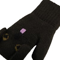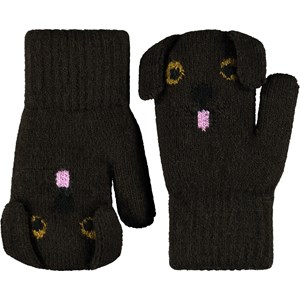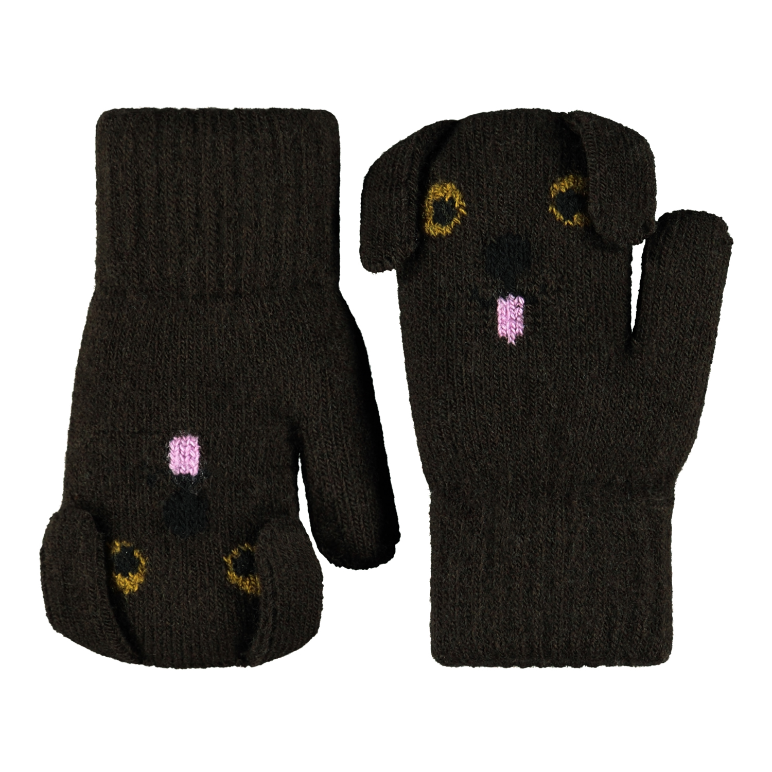 Donkerbruine gebreide wanten voor kinderen met een schattig honden gezicht.