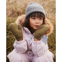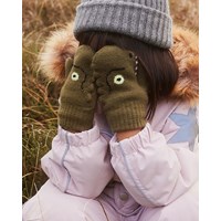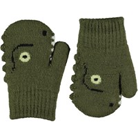 Groene babywanten met een lief dinosaurus motief en stekels aan de zijkant.