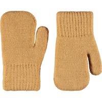 Bruine gebreide wanten voor kinderen met een schattig teddyberengezicht.