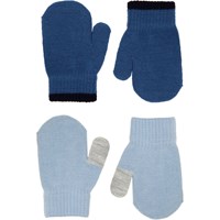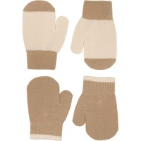 Duopak gebreide wanten voor baby's en peuters in gebroken witte en paarse kleuren. De wanten hebben een geribbelde boord rond de pols, wat ervoor zorgt dat ze op hun plaats blijven en niet van de hand afglijden.