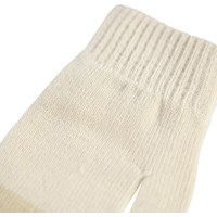 Duo pak gebreide wanten voor de kleintjes in gebroken wit en beige. De wanten hebben een geribbelde boord rond de pols die ervoor zorgt dat ze op hun plaats blijven en niet van de hand afglijden.