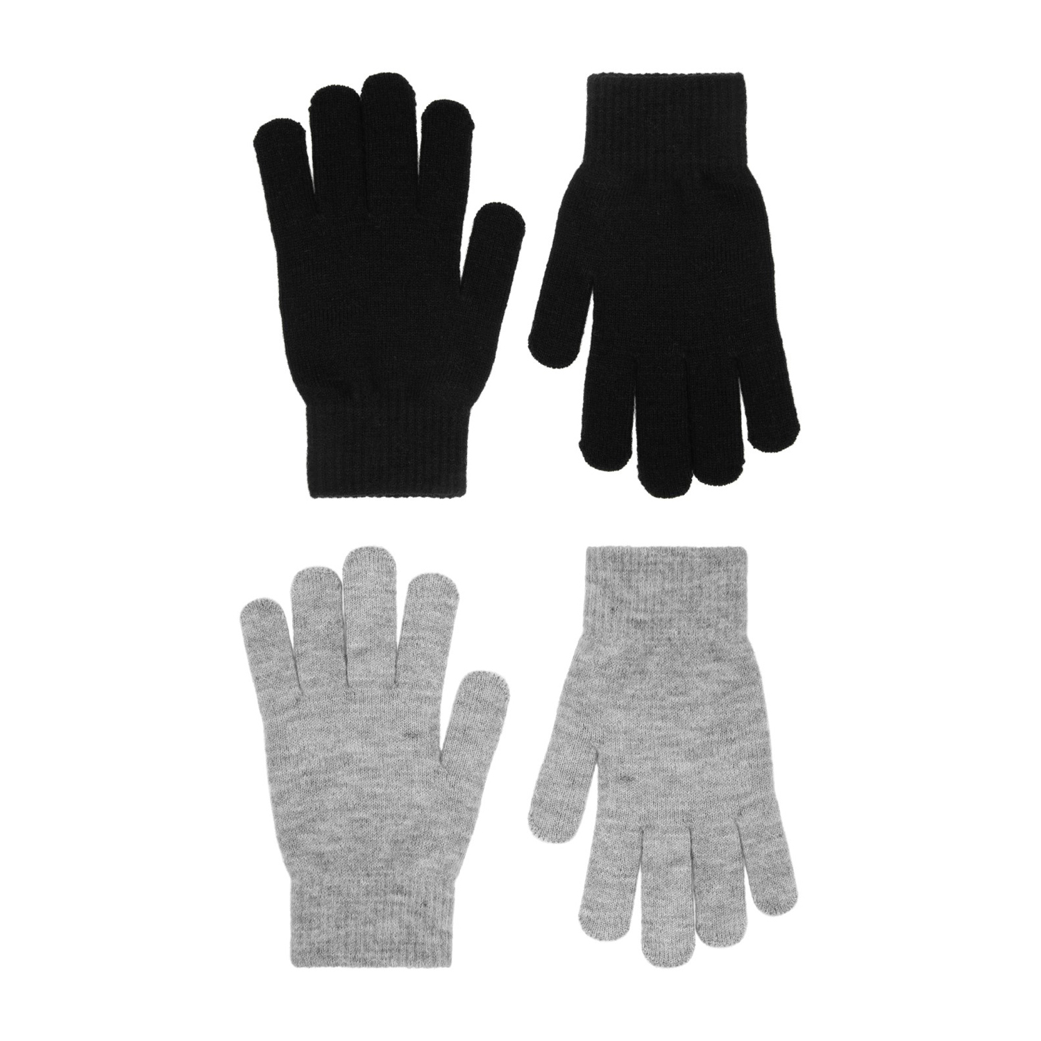 Duopak gebreide handschoenen in zwart en grijs. De handschoenen hebben een geribbelde manchet rond de pols, waardoor ze comfortabel zijn om te dragen en voorkomen dat ze van de hand afglijden.