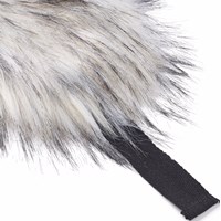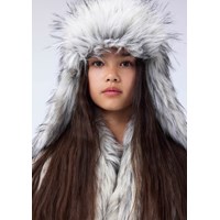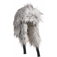 Grote grijze muts in nepbontstijl. De muts heeft oorflappen, bandjes en een voering.
