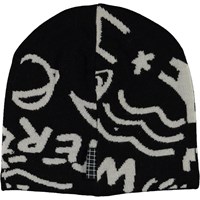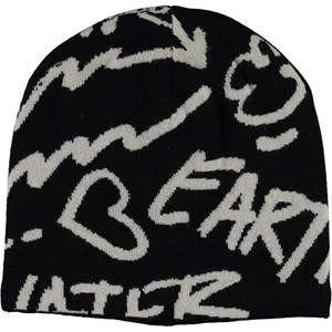 Zwarte muts met een grafische print in grijs.