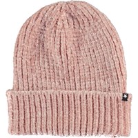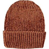 Bruine muts van heerlijk knus gebreide chenille met een grote rolboord.