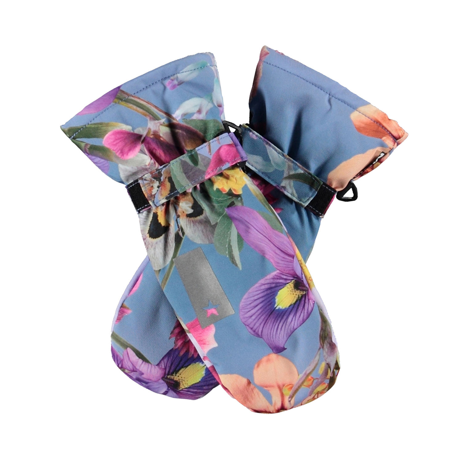 Kleurrijke, waterdichte en ademende wanten met bloemenprint en 3M™ Thinsulate™ isolatie. De wanten hebben een reflecterende strip aan de voorkant en elastiek en verstelbare klittenband rond de pols.