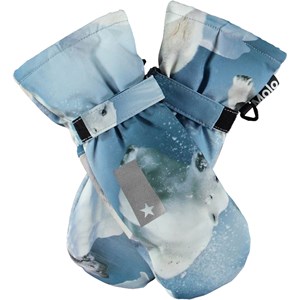 Blauwe, waterdichte en ademende wanten met ijsbeerprint en 3M™ Thinsulate™ isolatie. De wanten hebben een reflector aan de voorkant, evenals elastiek en verstelbaar klittenband rond de pols.