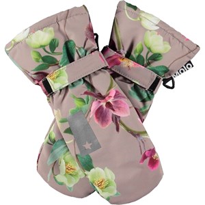 Roze waterdichte en ademende wanten met bloemenprint en isolatie van 3M™ Thinsulate™. De wanten hebben een reflecterende strip aan de voorkant en elastiek en verstelbaar klittenband rond de pols.