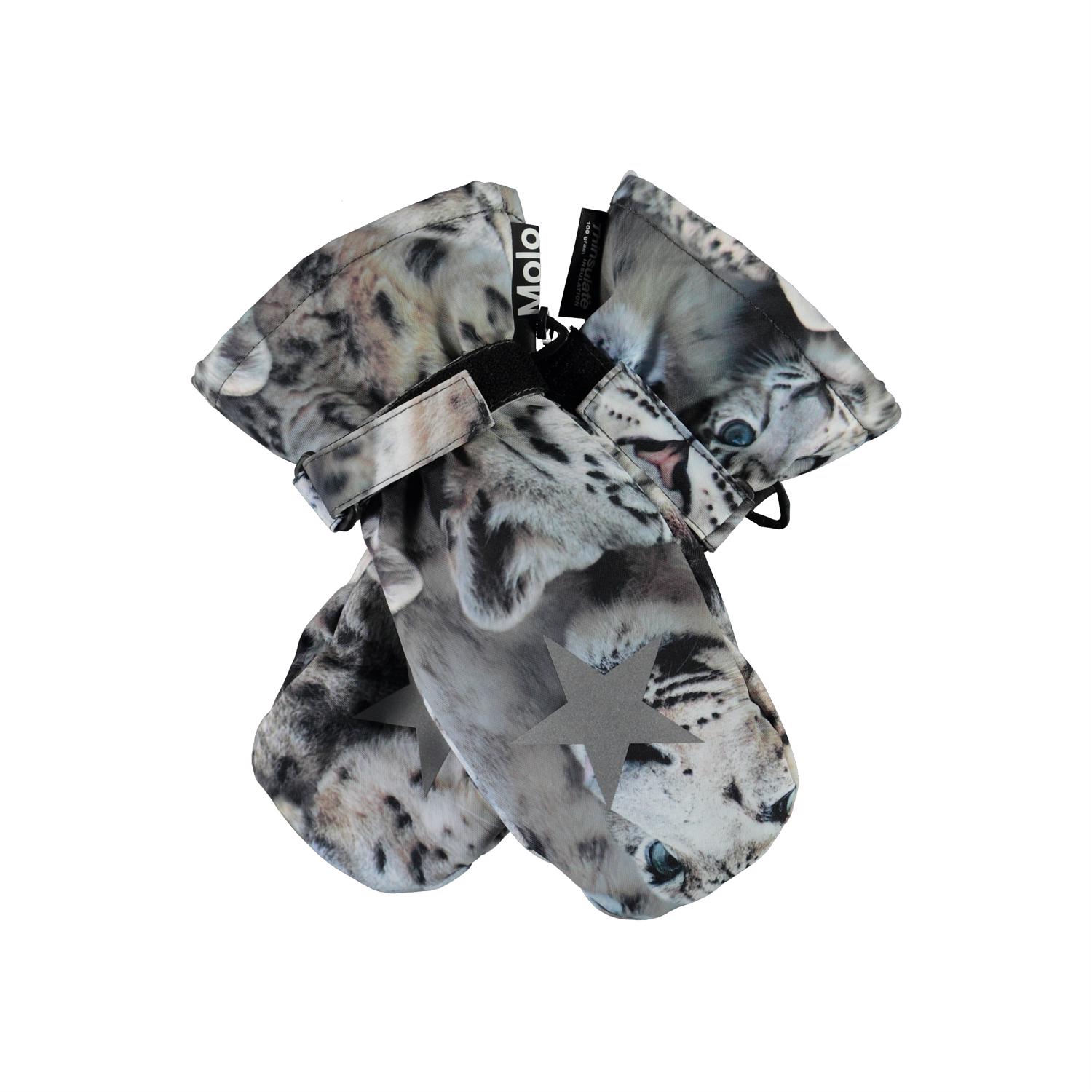 Waterdichte en ademende wanten met 3M ™ Thinsulate ™ isolatie. Ze hebben een print van sneeuwluipaarden en sterreflectoren op de hand. Ze hebben elastisch en verstelbaar klittenband bij de polsen. De buitenstof is 51% gerecycled en gemaakt van gerecycled polyester. De wanten hebben een waterafstotende, PFC-vrije oppervlaktebehandeling (bevat bijvoorbeeld geen PFOS, PFOA, etc). Waterkolomdruk: 10.000 mm en ademend: 8.000 g / m2 / 24 uur.