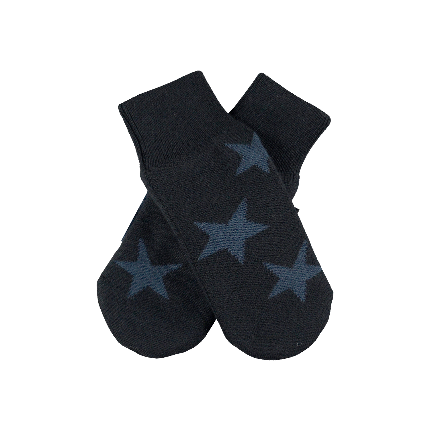 Gebreide wanten in het blauw met intarsia sterren. Ze zijn gemaakt van een zachte wolmix.