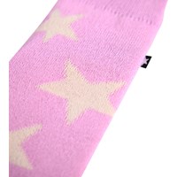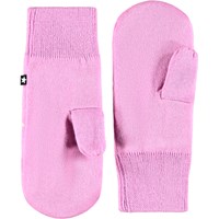 Roze gebreide wanten met crèmekleurige sterren voor kinderen.