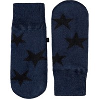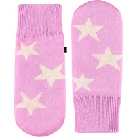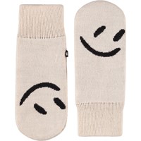 Gebroken witte gebreide wanten met een zwart lachend gezicht voor kinderen.