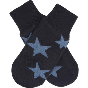 Donkerblauwe gebreide handschoenen met een blauw sterrenpatroon gemaakt van een zachte wolmix.