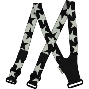 Zwart witte verstelbare bretels met een sterrenprint die past bij alle regen- en skibroeken van Molo.