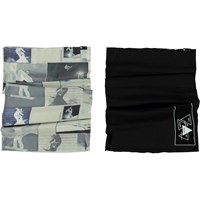 2 Colsjaals die het hele jaar door op veel verschillende manieren kunnen worden gebruikt. De ene is beige met een snowboarder print en de andere is zwart. Gebruik het rond de nek of trek het omhoog zodat het de oren bedekt.