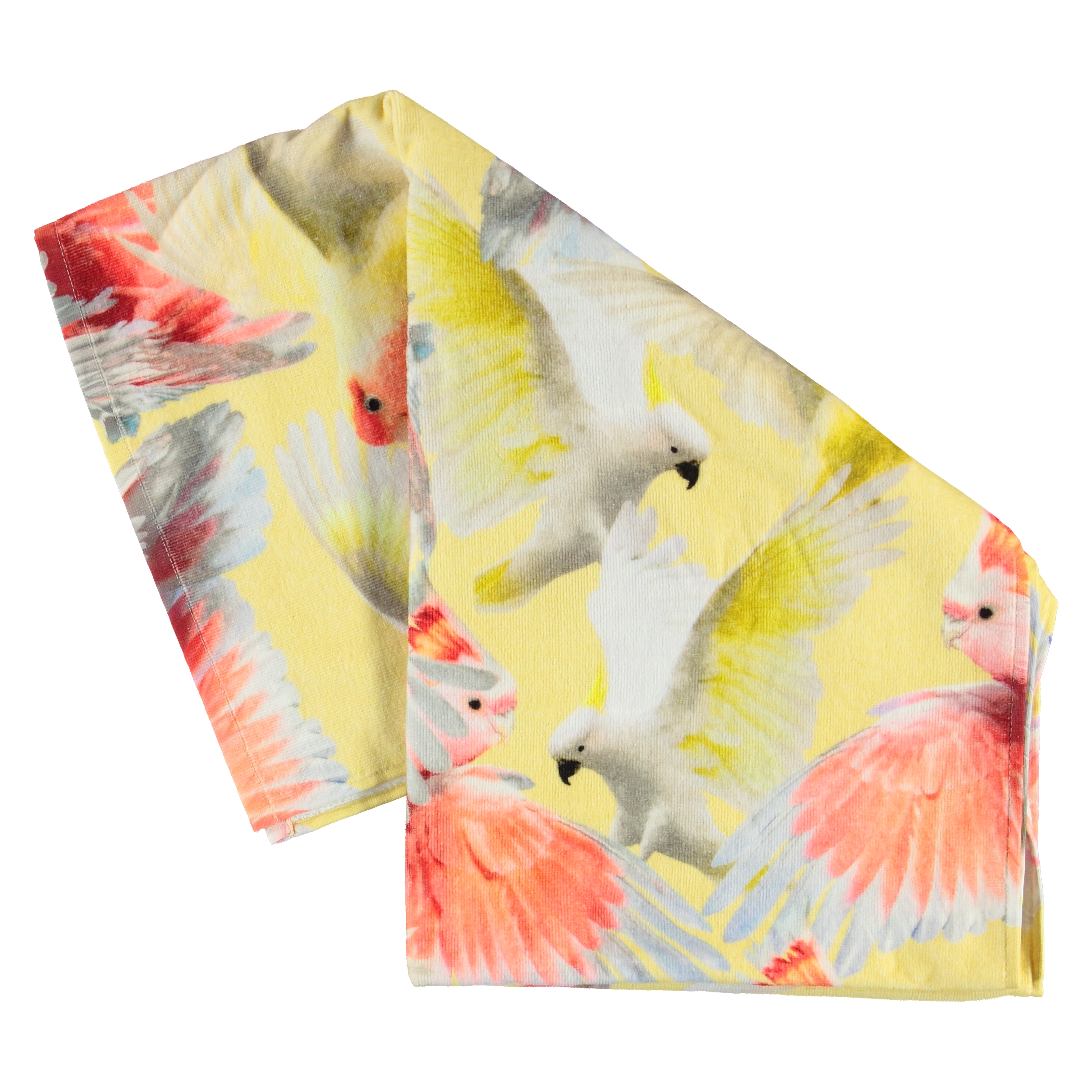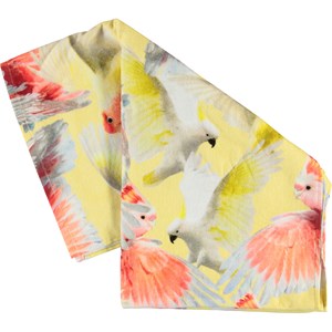 Luxe, zachte strandlaken in geel met een papegaaienprint. Gebruik de handdoek met bijpassende zwemkleding voor de perfecte strandlook. De afmeting van de handdoek: breedte: 75 cm en lengte: 150 cm.