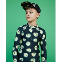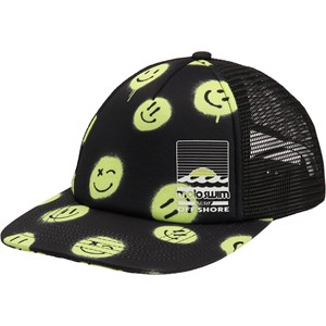 Stoere zwarte pet met een print van gele smiley’s. De pet heeft aan de achterkant gaas en kan hier versteld worden.