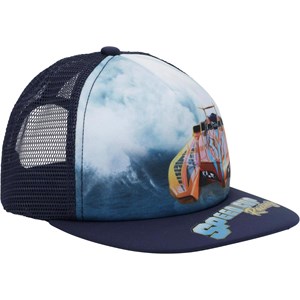 Stoere baseballcap met een elektrische speedboot en de tekst “Speed Cup Racing”. De cap heeft aan de achterkant een net en kan worden versteld.