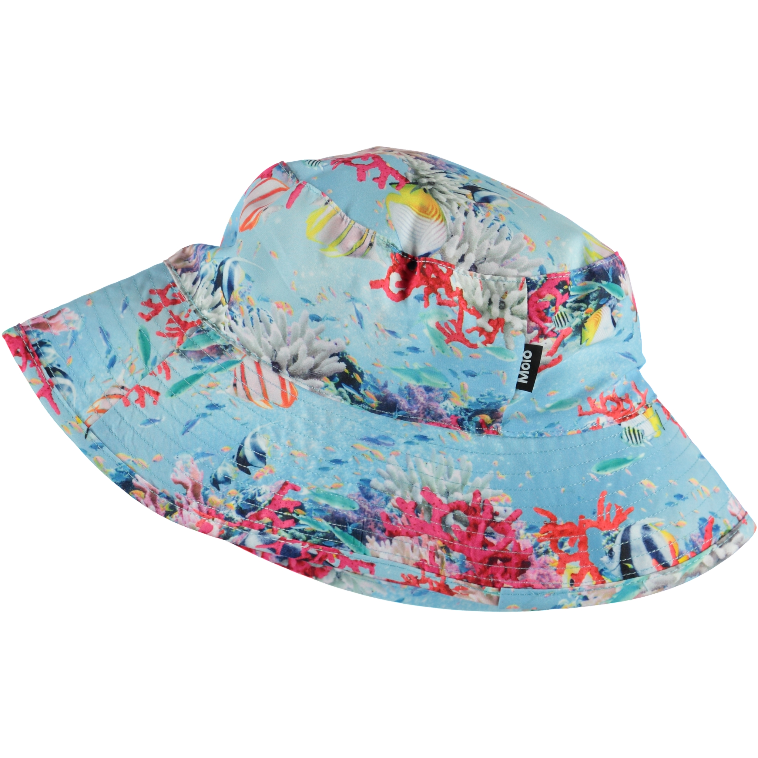 Zomerhoed met een brede rand en 50+ UV-bescherming. De hoed is de must have accessoire van deze zomer en past bij elke outfit met Molo's ‘Coral Stripe’ print.