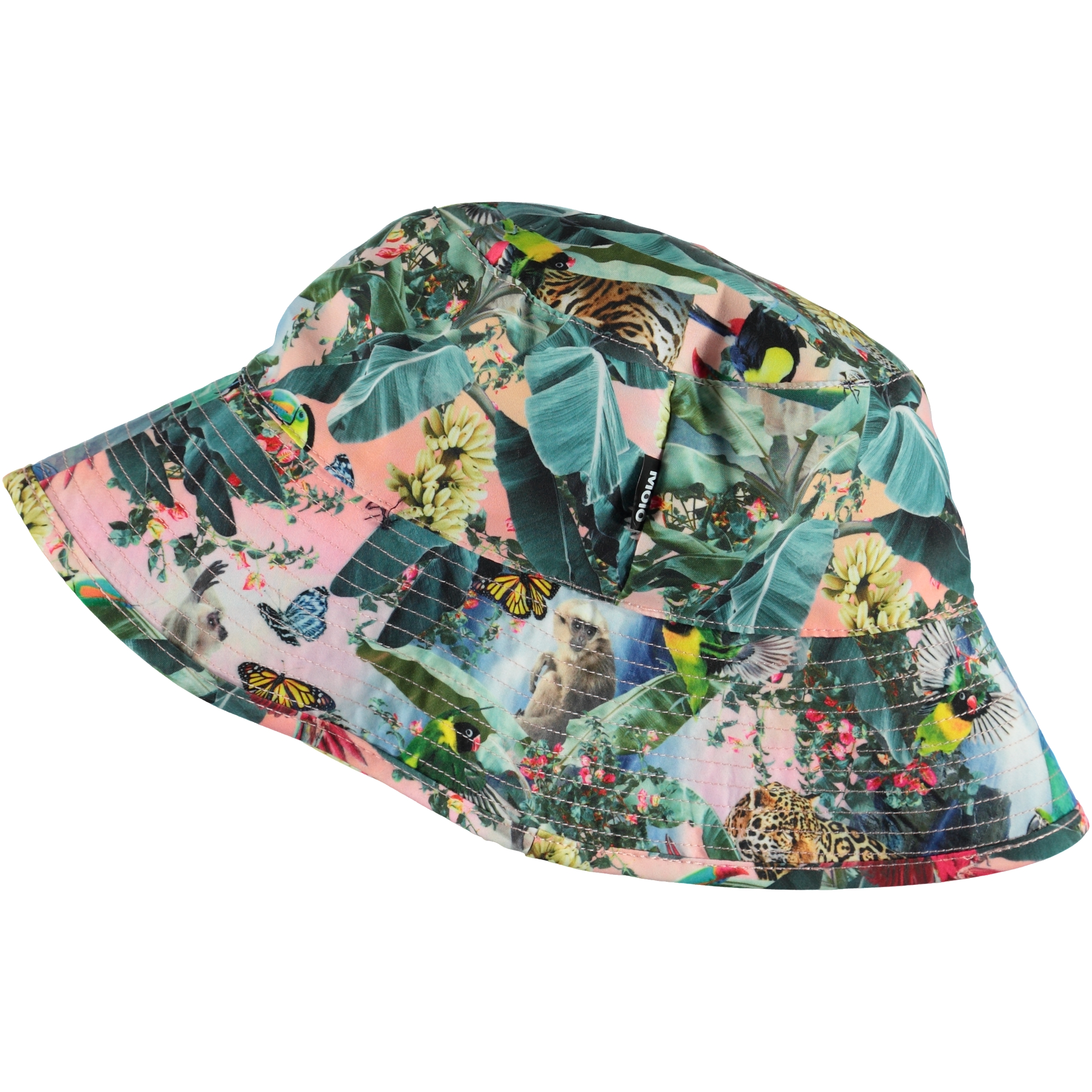 Zomerhoed met een brede rand en 50+ UV-bescherming. De hoed is de must have accessoire van deze zomer en past bij elke outfit met Molo's ‘Wild Amazon’ print.