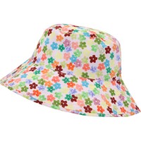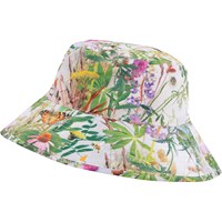 Bucket hat met brede klep en een kleurrijke print van 100% polyester. De print bestaat uit een bloemenzee met vlinders. De brede rand is perfect voor extra bescherming tegen de zon.