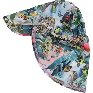 Zonnehoed met 50+ UV-bescherming, een brede klep en lang achter in de nek voor extra bescherming. De zonnehoed heeft de ‘Wild Amazon’ print.