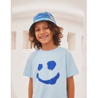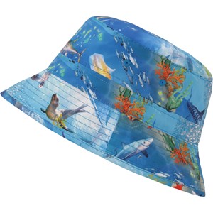 Bucket hat van 100% polyesterm met print in blauwtinten. Op de print staan diverse zeedieren en koraal. De extra brede rand is perfect voor extra bescherming tegen de zon.