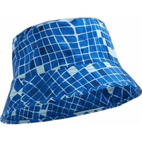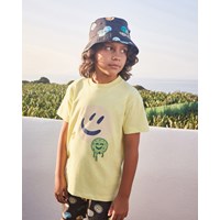 Buckethat van gerecycled nylon met UV-bescherming 50+. De buckethat heeft een normale pasvorm met luchtgaten en is ideaal om mee te nemen naar het water, aangezien het materiaal snel droogt. De buckethat is zwart met een all over print van kleurrijke smiley's.