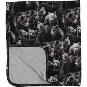 Zacht gevoerde katoenen deken met een mooie berenprint. De achterkant van de deken is grijs.