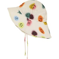 Zonnehoed met 50+ UV bescherming, een brede rand en langer aan de achterkant om het kind optimaal te beschermen. De zonnehoed is lichtblauw met een print van de Savanna en de dieren die daar leven.